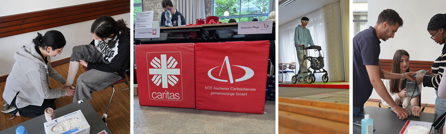 Die ACD hat gemeinsam mit den Kolleginnen und Kollegen vom Regionalen Caritasverband im Altenheim St. Elisabeth einen Praxistag für Schülerinnen und Schüler veranstaltet. Dabei wurden den Schülern einige Handgriffe aus der Pflege gezeigt, die jungen Leute sollten aber nicht nur zuschauen, sondern auch unbedingt selbst einmal Hand anlegen.